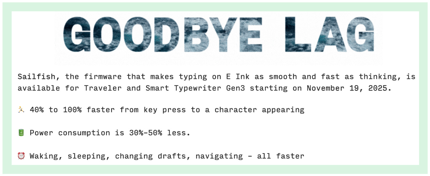 Freewrite’s new firmware update could’ve been announced like every other tech company: “Version 2.3 - Performance Improvements.”