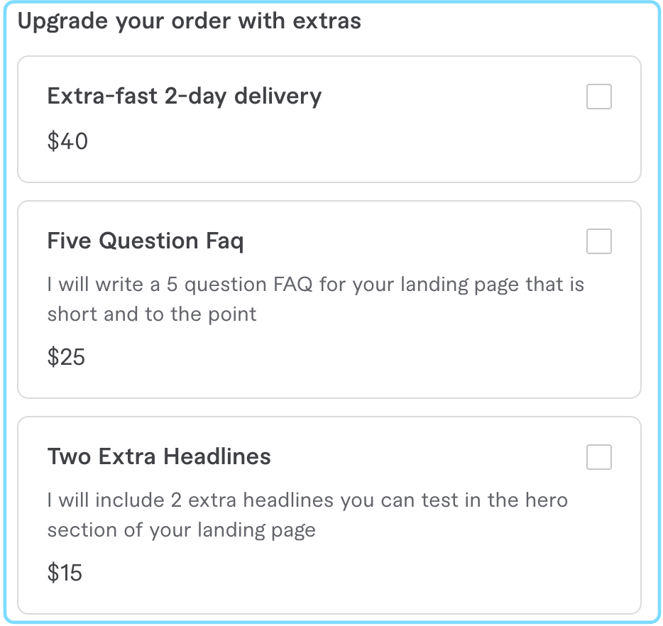 When a client sees āWebsite copy + 2 high-converting headline variationsā, they donāt see a bigger invoice. They see more options for testing and achieving success.